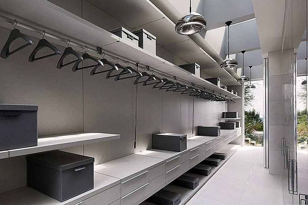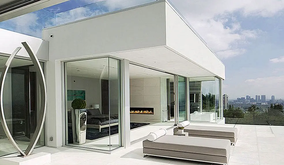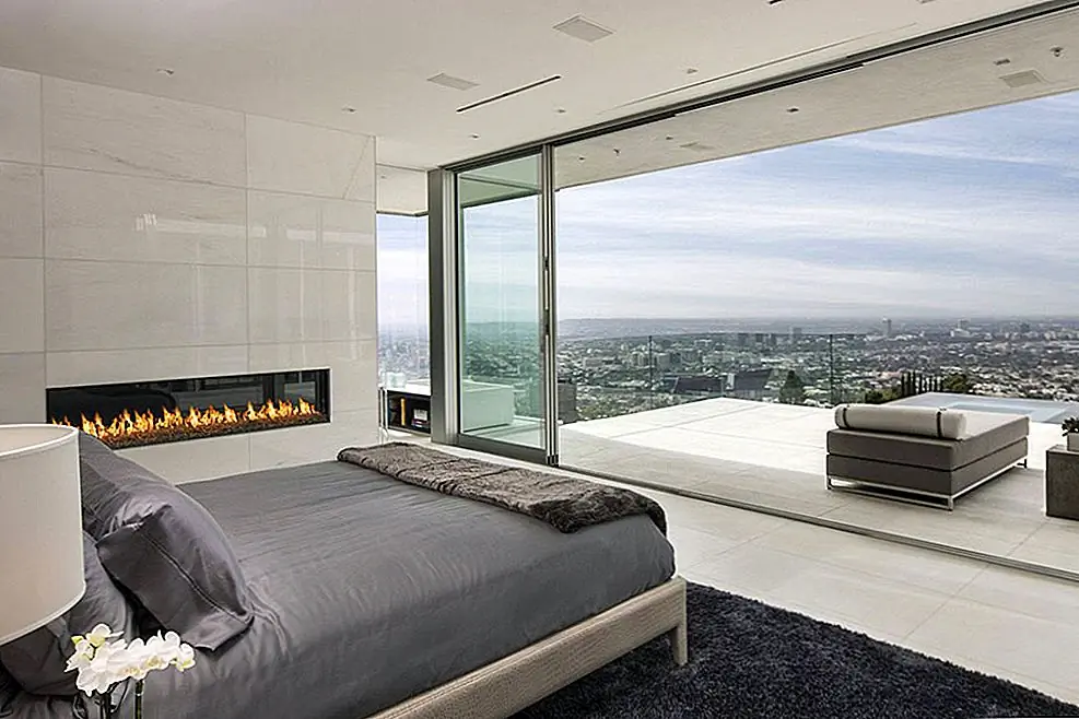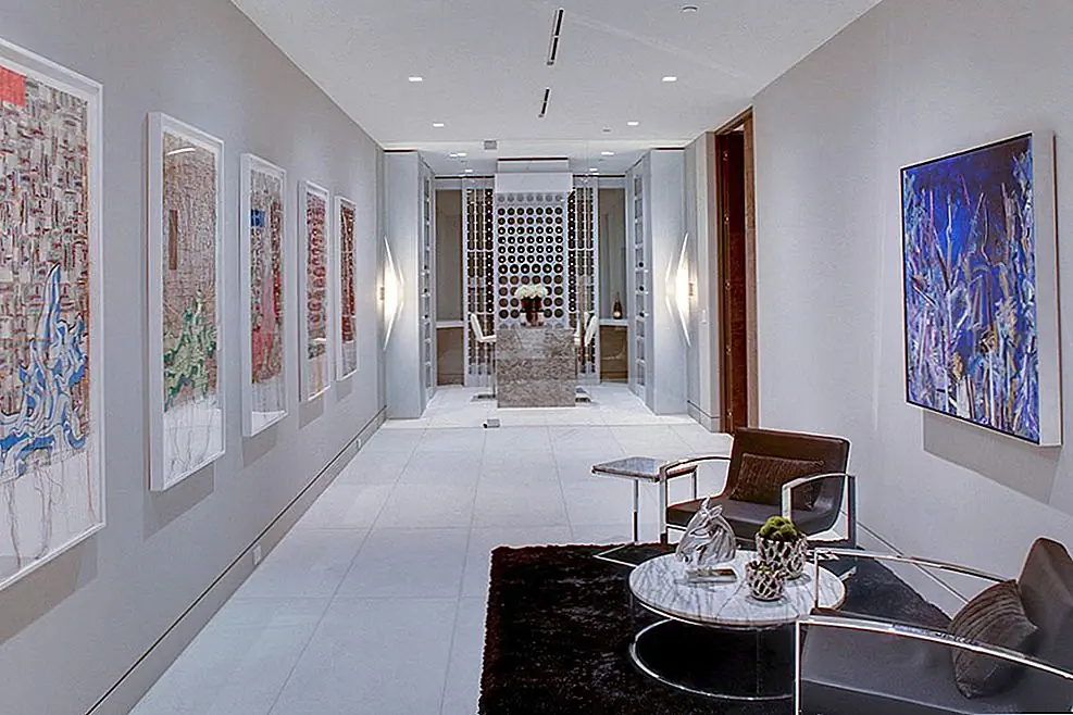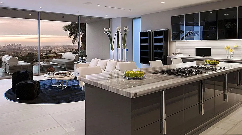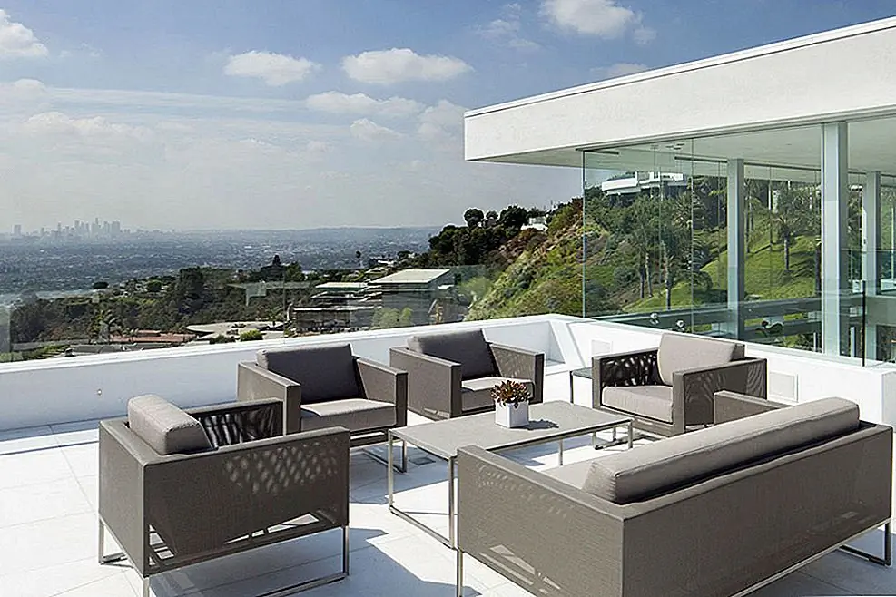 Материалы и формы переплетаются, чтобы составить удивительную современную резиденцию: «Двухэтажная гостиная - редкость по соседству и в сочетании со светом, приходящим со всех сторон, придает дому просторную атмосферу. Палитра для дома - гладкий Голливуд; черный и белый, блестящие и замшевые, делающие много использования мрамора, темного гранита и хрома, а также шкафов с высоким глянцем и специальной обои. «С уникальным бесконечным краем бассейна, простирающимся вдоль главной палубы, этот роскошный дом искрится с благодарностью за его места, материалов и художественной интерпретации современной жизни.