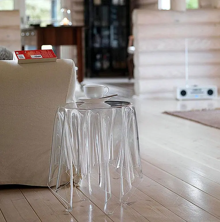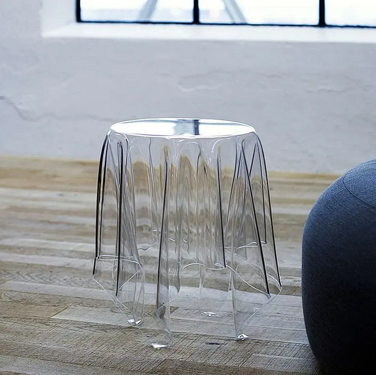 Нет, вы ничего не видите. Да, вы действительно можете это купить. Стол стола Essey Illusion ($ 270) может быть самым крутым использованием прозрачного акрила, который мы видели в дизайне мебели. Этот ручной демонстрационный стенд изготовлен для создания иллюзии ткани, набитой над круглым столом; объединенные концы «ткани» создают структуру, которая придает этой части физическую стабильность, а визуально - оставшийся свет в виде пера.