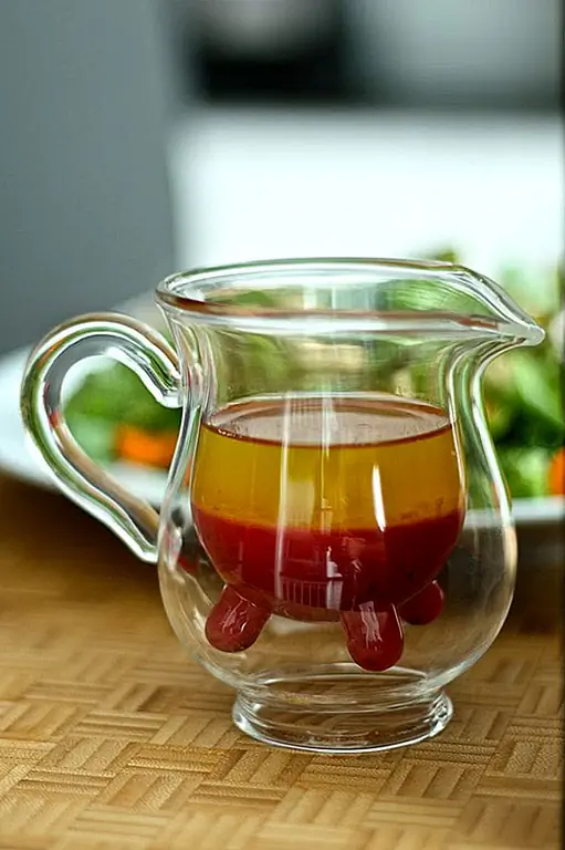 является неотразимым. Или, как описывают его продюсеры, - «неудержимо неотразимо». Благодаря своему умному дизайну с двойным стеновым стеклом кувшин показывает свою естественную сторону, когда он наполнен молоком. Вероятно, первое прилагательное, которое приходит на ум при описании этого элемента, является «симпатичным». Особенно, если учитывать его размер: кувшин имеет только четыре дюйма (десять сантиметров), что делает его драгоценным камнем вокруг кухни. С другой стороны, это не помешает, если производители придумают более крупную версию творческого предмета (что означает более практичный дизайн). Но мы уверены, что дети будут влюблены в свое первоначальное появление, независимо от того, какая жидкость внутри. Пользователь может полностью воспользоваться его прозрачностью и покрасить его различными способами - например, чашка внизу была заполнена салатным соусом, но также отлично работает с соусами и сиропами. оцененный $24, Хефер Питчер это весело, творчески и визуально привлекательно. И это самое близкое, что вы когда-либо доберетесь до того, чтобы пить молоко «как естественное» с комфортом собственной кухни.