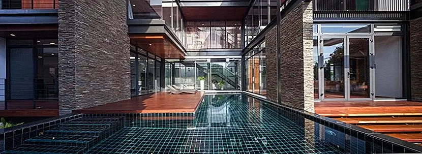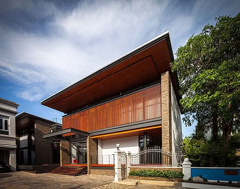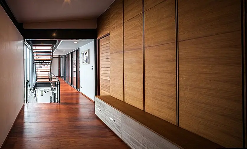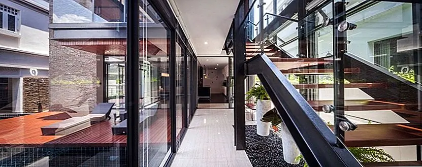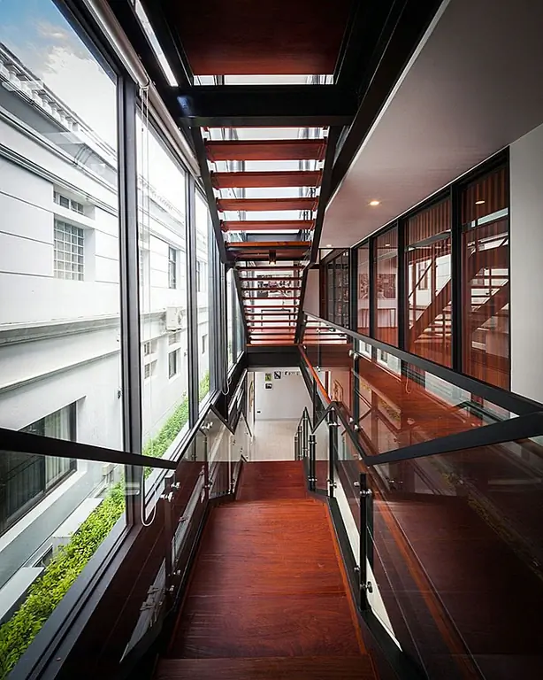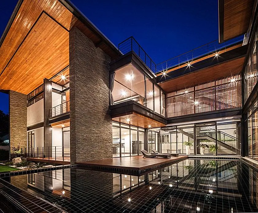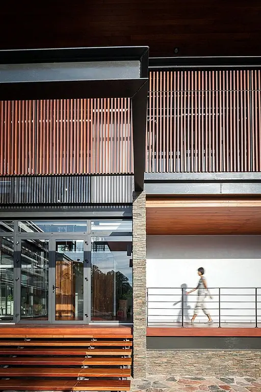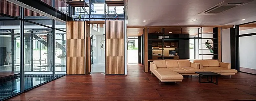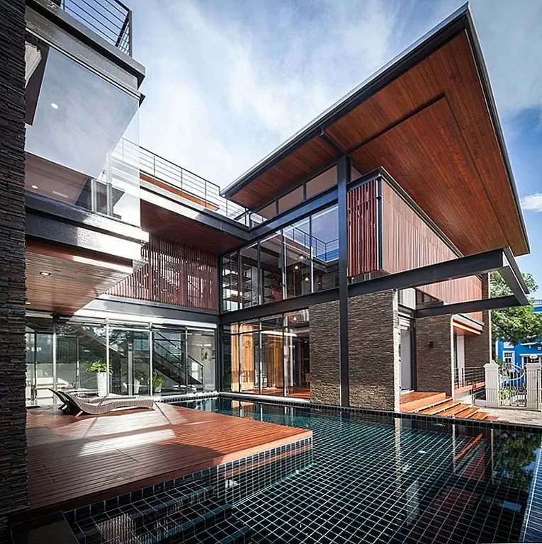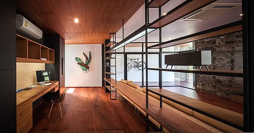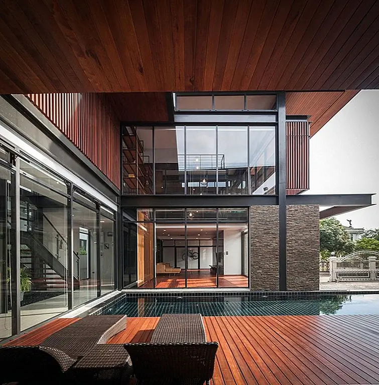 Архитектор и дизайн Junsekino завершила разработку Дом моста, современный семейный дом в Бангкоке, Таиланд. Это нетрадиционное место жительства было идеальным решением для семьи из двух поколений, чтобы жить коллективно, но все еще наслаждаться своим личным пространством. Используя сталь вместе с деревом, архитекторы создали интересный контраст грубой и мягкой. Намерение архитектора состояло в том, чтобы построить самый тонкий и легкий дом, чтобы противостоять идее бывшего здания на участке, напоминающего компактную белую коробку.