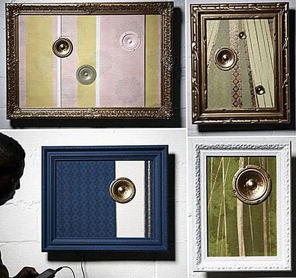 Из дерева, регенерированных старинных рамок, кусочков ткани и старых динамиков, устойчивый дизайн этих художественных «звуковых рамок» воссоздает мир дизайна, который объединяет более одного чувства. Отличное качество звука дает один динамик, совершенно новый. Великолепно создавая музыкальное искусство, дуэт художника работал над этим проектом в течение нескольких месяцев, но конечный результат поражает.