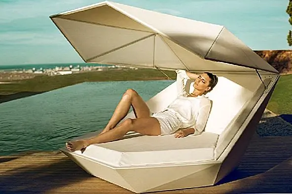 Вдохновленный полигональной формой минералов, найденных в природе, испанский архитектор Рамон Эстев разработал кушетку Faz для VONDOM. Полученная деталь для наружной мебели смешивает элегантный дизайн с практической способностью защищать пользователя от вредных солнечных лучей. Кроме того, кресло для отдыха оборудовано колесами, что позволяет легко перемещаться из одного места в другое и создавать универсальную релаксационную платформу для принятия солнечных ванн. Просто переключите кушетку вокруг, чтобы получить оптимальное количество солнечного света!