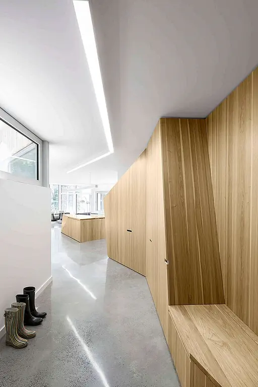 Встроенные устройства обеспечивают хранение и скрытие живого существа, позволяя сосредоточиться на их форме и дизайне. Они также отделяют больше частных зон от открытой атмосферы основных комнат дома. [Фотография и информация, предоставленные Architizer]