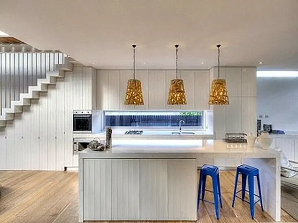Чувство, которое вы получаете от просмотра интерьеров этого очаровательного дома в Бонди, Сидней, Австралия, - это легкость. Резиденция, спроектированная архитектором Ури Тургемом и дизайнером интерьеров Шелли Гордун, состоит из четырех спален и трех ванных комнат, все из которых украшают очаровательную бело-синюю отделку. Эфирная атмосфера, вероятно, связана с прибрежной средой дома, что также отражается на широком использовании стеклянных и клишеобразных окон.