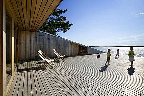 Вилла Mecklin была спроектирована архитекторами Хаттунен-Липасти-Пакканен и расположена в Наантали, Финляндия. Его оригинальная архитектура привлекла наше внимание, и мы с нетерпением ждем ваших впечатлений. Каменистая строительная площадка прекрасна и сложна, но, по-видимому, строительный процесс вовсе не был отрицательно сказывается на местности. Фактически, после хорошего исследования все работало в соответствии с планом. Нам особенно нравится деревянная платформа, которая может использоваться многими творческими и практическими способами. Вот информация от архитекторов:Главное здание сидит в маленькой депрессии в скале, ее защищенная терраса простирается над вершиной скалы. Один прибывает из гавани к входу в главный дом, прикрытый деревьями. После спуска нескольких ступеней разворачивается обширный ландшафт западного берега с его длинными перспективами. Камин был погружен в центр большой террасы, доступ через люк на террасе. Когда огонь не горит, а люк на месте, можно использовать всю террасу, например, танцпол. В связи с сауной береговой линии для гостей также есть камин с подогревом.”