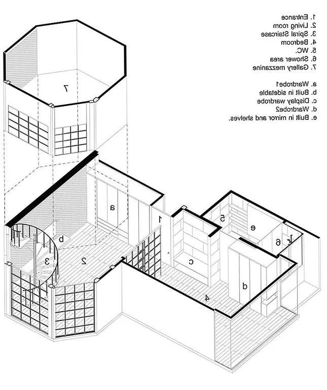 Представленный выше восьмиугольник мезонин был представлен как крытая галерея, где владельцы могут работать или отдыхать. Окна большого размера позволяют естественному освещению заливать пространства, добавляя свою долю доработки.