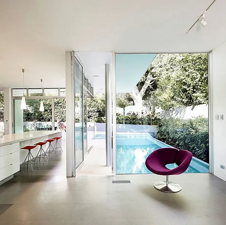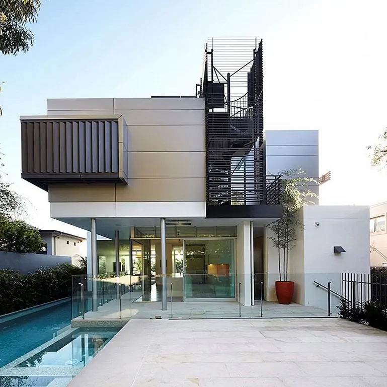 Выставляя драматическую архитектуру, Wentworth Rd дом Edward Szewczyk Архитекторы в полной мере используют возможности Сиднейской гавани и климат. Взаимодействие горизонтальных линий определяет внешность этого трехуровневого дома, что затрудняет прохождение его внушительного силуэта при прохождении по окрестностям. Противоположный фасад открывается в сторону внутреннего сада и бассейна.