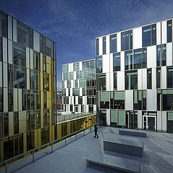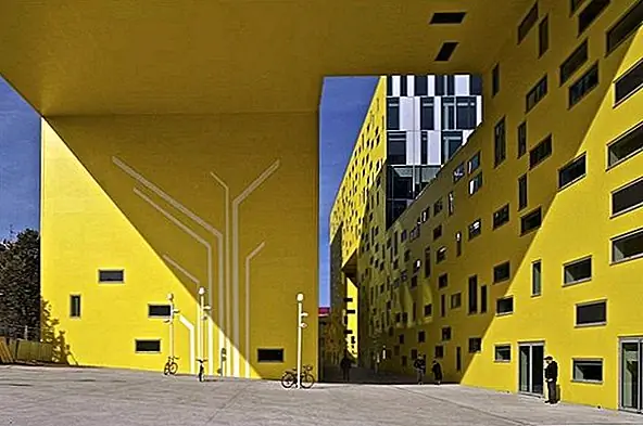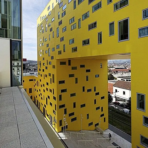 Офисное здание Aztec Serpent было спроектировано архитектурой Мануэля Гаутрана и расположено недалеко от главного железнодорожного вокзала в Сент-Этьене, Франция. Архитектура этого здания смелая и оригинальная, не говоря уже о современном. По словам французской студии Manuelle Gautrand Architecture, проект подобен большому «змею ацтеков», поднимающемуся на участке. Его тело имеет три одинаковые внешние грани, а нижняя сторона - другая: кожа серебристых прозрачных чешуек и ярко-желтое «горло», блестящие и непрозрачные, Как сообщается My Modern Met, внутренний двор играет центральную часть структуры, так как здание обходит вокруг него. Части внушительного архитектурного проекта являются консольными, что придает ему смелый, впечатляющий вид. Контраст между прямоугольными окнами и желтыми стенами имеет большой визуальный эффект. (Фото: Филипп Руо)