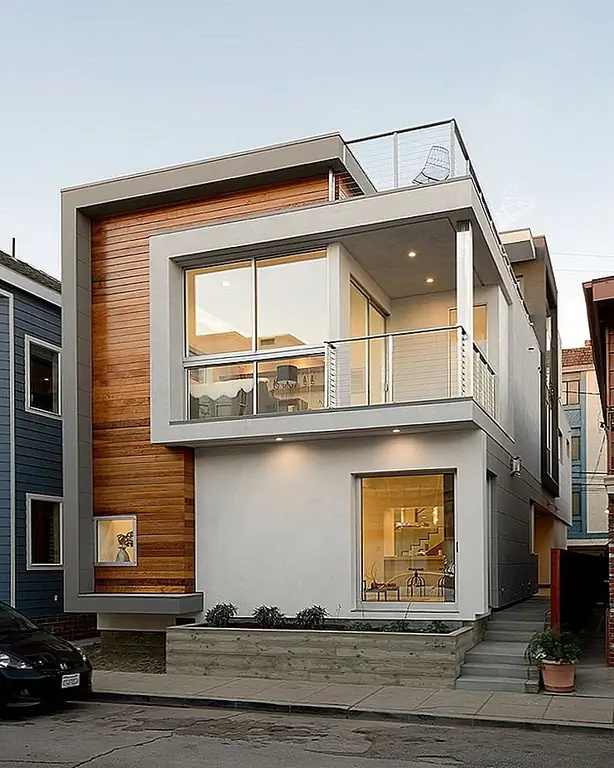 Дом полуострова в Лонг-Бич, Калифорния, LeMaster Architects отображает оригинальную современную архитектуру и компактную форму. Концепция этой односемейной резиденции зависит от взаимосвязи между тремя пересекающимися томами и базой. Основной объем состоит из внешней облицовочной системы, которая обертывает южную высоту. Два дополнительных тома вставляются для просмотра фокуса и выделения значительных программных элементов», - объяснили архитекторы. Креативным дополнением для отдыха на свежем воздухе является крыша, особенно предусмотренная для объединения семьи в теплые вечера.