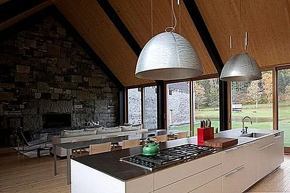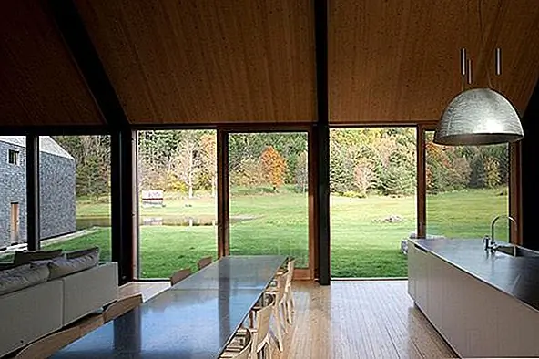 От Rick Joy Architects, Woodstock Farm находится в сказочном месте в Вермонте, США. Построенное из гальки и камня и с захватывающим видом на близлежащие озера и зеленые насаждения, это место может напоминать одну из детских сказок или сказочных горных пейзажей. Тем не менее, Ферма Вудстока такая же реальная, как и она. Здание, построенное как семейный дом и в качестве выходного дня, является устойчивым и даже вмещает 200-летние каменные стены, найденные на участке проекта. Помимо основного строительства, имеется большой гостевой дом для размещения посетителей. Интерьер отделан деревом и отделки камня, которые вносят свой вклад в подлинное естественное ощущение. -via Digs Digs