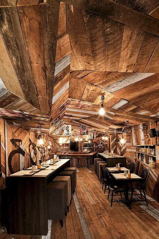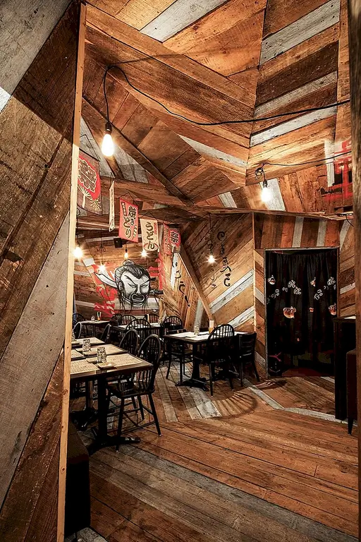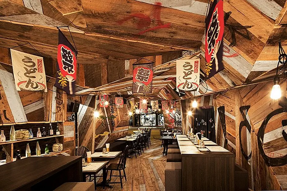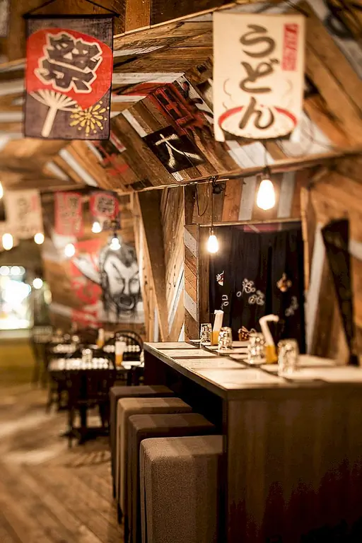 Изакая Киноя в Монреале, Канада - последний ресторанный и барный проект, принадлежащий дизайнеру-дизайнеру Жан де Лурсарду. В своей работе архитектор подражает первому духу, функции и эстетике изакайи, неформального места, где люди пили пиво и саке. Мы узнали, что нетрадиционный ресторан всегда был наполнен с момента его открытия, несмотря на то, что человек должен стоять плечом к плечу. Мягкое освещение и уютная атмосфера делают его дружественной обстановкой, где запах дерева смешивается с ароматами аппетитных блюд.