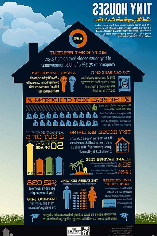 Не судите о жителях крошечных домов. Они не все бездомные или вне дома. Многие из них - большие поклонники дизайна и архитектуры. И согласно tinylife.com в их инфографике ниже, 2 из пяти являются бэби-бумерами, они зарабатывают больше, чем средний американец, и в два раза чаще имеют диплом о высшем образовании.