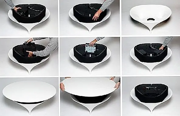 Оригинальный Acoustable выпускается бельгийскими дизайнерами Jérôme Spriet и Wolfgang Bregentzer и сочетает в себе функциональность журнального столика с ритмами качественной звуковой системы. Согласно дизайну, необычный стол состоит из базовой оболочки и верхней поверхности с пенной сердцевиной между ними. Вот еще от дизайнеров: Кофейный столик в центре комнаты становится звуковой системой и силовой клеммой. Нет видимых технических элементов, только плеер и пульт дистанционного управления, которые могут храниться в встроенном кармане. Акустик сделан из полимерной и минеральной смеси, которая сочетает в себе преимущества камня и пластика. Его форма следует за естественными кривыми упругой мембраны, которая, как и ее звук, наполняет пространство внушительно. Проект имеет диаметр 120 см и высоту 50 см, что делает его идеальным для необычного рабочего стола. Для получения дополнительной информации вы можете связаться с производителями здесь.